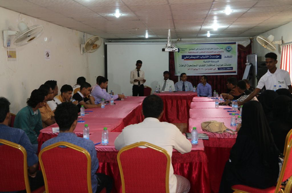 وتستمر جلستيّ الحوار والمناقشة للفترة[26-27] يوليو 2017م، والتي عقدت أولى جلساتها اليوم الاربعاء بمشاركة 27 مشاركاً ومشاركة من القيادات الشبابية والمجتمعية فيما ستعقد الجلسة الثانية يوم غدٍ الخميس بنفس العدد ومشاركين مختلفين.